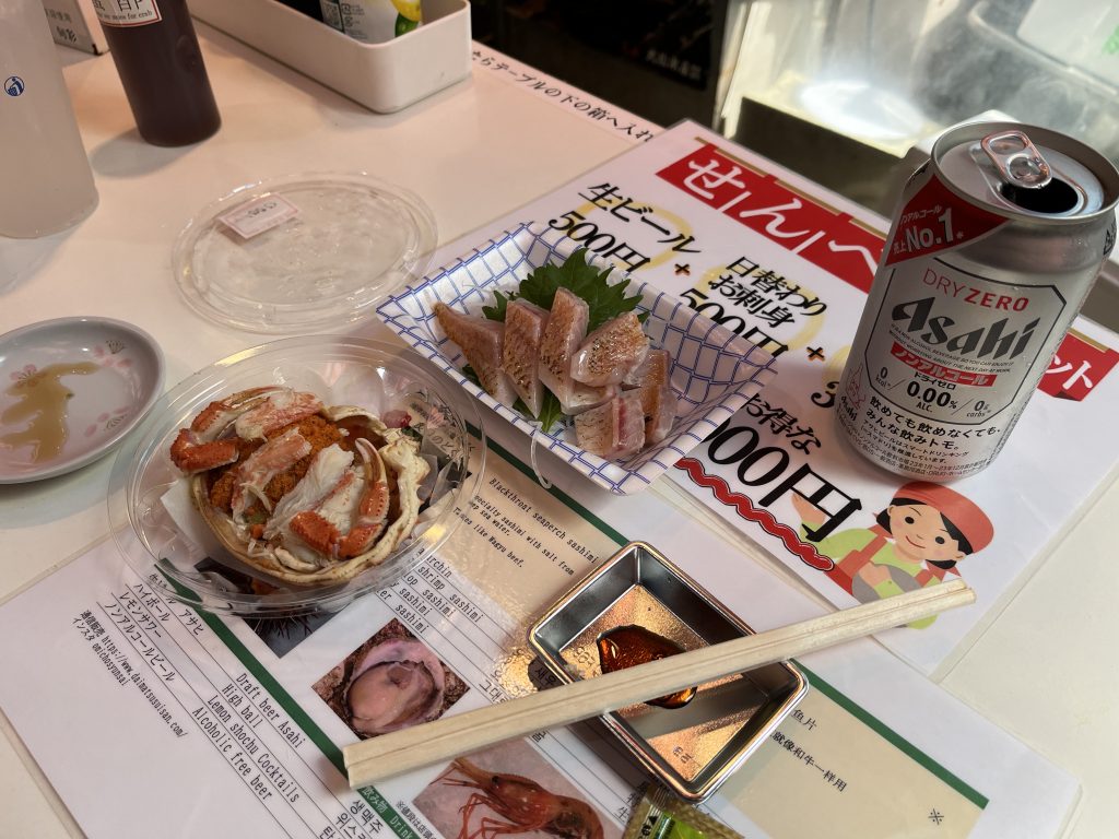 立ち食いの飲み屋さんで、のどぐろの炙りとカニを注文。